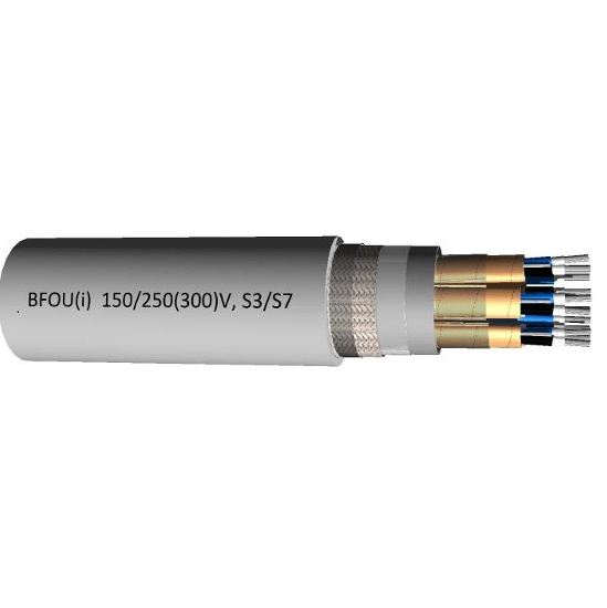 BFOU(i) S3/S7 marine Cable is used in fixed installations for control, instrumentation and telecommunication in both explosion and safe areas, in emergency and critical systems where requirement for fire resistance exists. The cable is also used for installations in areas exposed to mud and drilling or cleaning fluids.