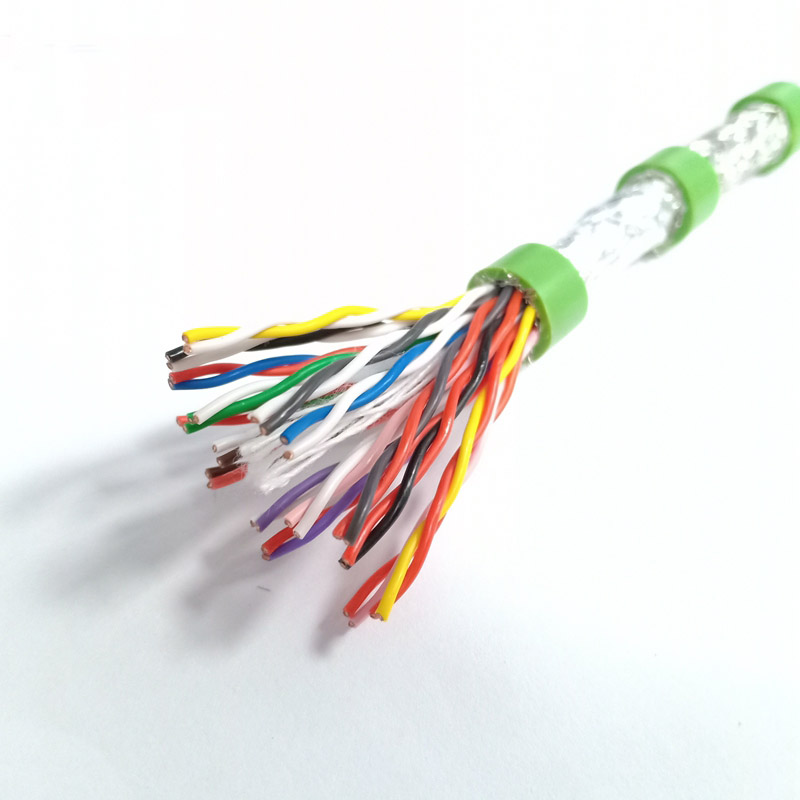 Tpu Sheath PUR-CY(ST) 16x2x0.3mm2 Shielded Twisted Pair Signal Cable can be used to transmit analog and digital signals in equipment with a control processor, or as a connection line between instruments and control equipment. Suitable for occasions with low power consumption and uninterrupted data transmission. Widely used in machinery, instruments, industrial electronic equipment, Computer, information transmission system, suitable for any two-way communication occasions. The twisted pairs of core wires and small pitch can prevent the interference between the core wires and the outside and the composite material of PVC makes the cable have a long working life. 2. Tpu Sheath PUR-CY(ST) Cable construction: Conductor twisting method: Multi-strand ultra-fine copper wire twisting meets VDE 0295, category 6 column 5 standards Insulation resistance: 100MOhmxKm minimum Filled cotton textile and coated fiber fabric to increase tensile and bending resistance Temperature range: -30 ° C to + 105 ° C Bending radius: 7.5 x cable diameter